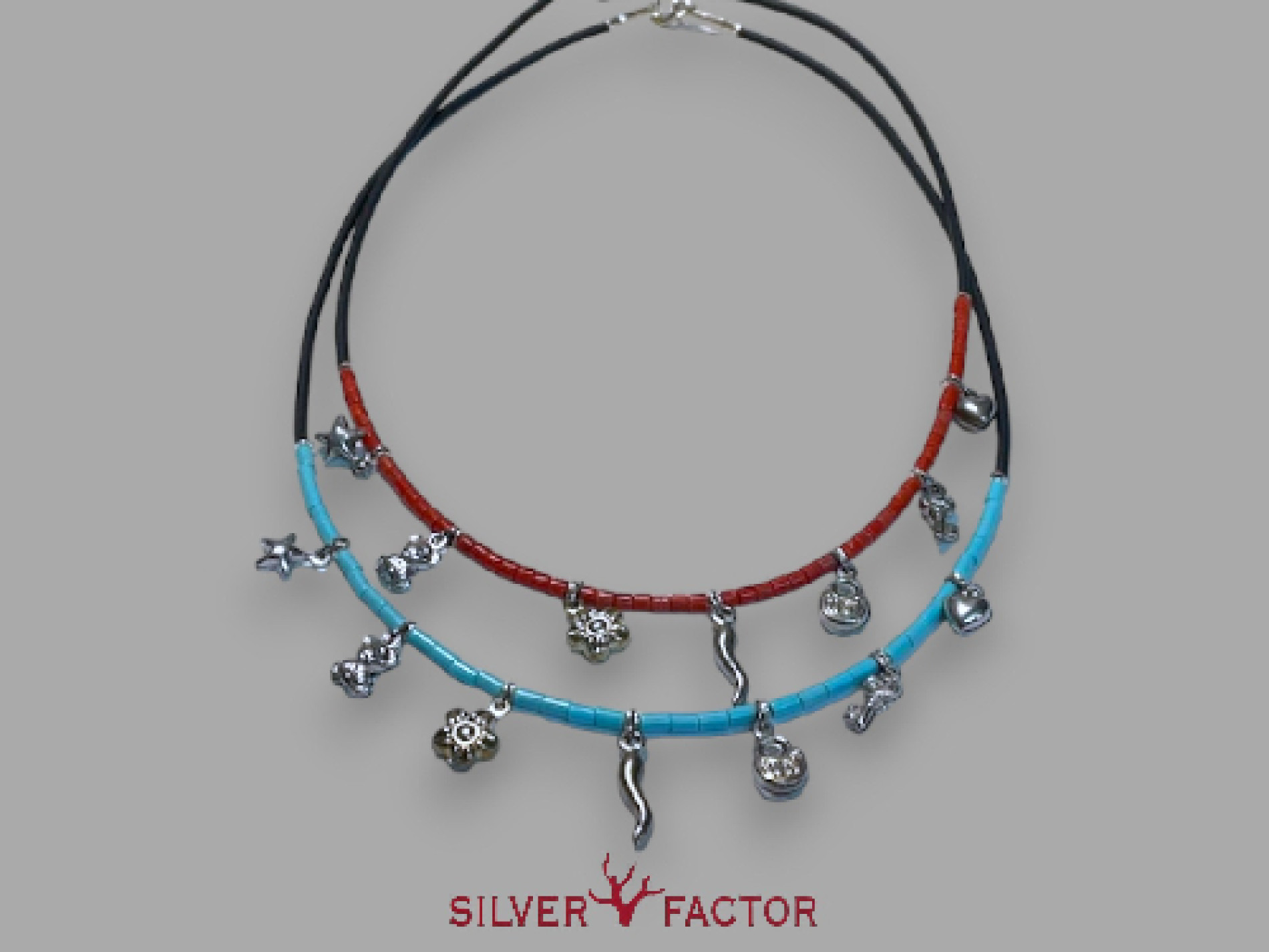 collar multicolgantes bambu rojo/turquesa caucho